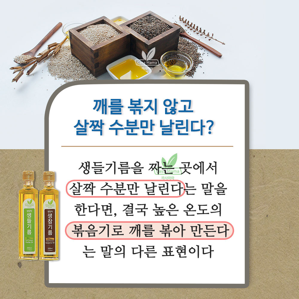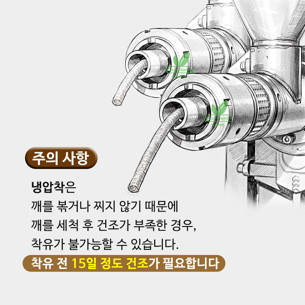 깨를 높은 온도의 볶음기에 볶지 않고 냉압착 전용